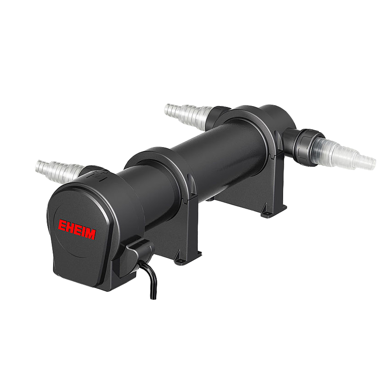 เครื่องฆ่าเชื้อน้ำในบ่อปลาผ่านหลอดรังสี UV-C โดยรังสี UV-C จะแทรกซึมเข้าไปในน้ำและฆ่าเชื้อจุลินทรีย์สปอร์ของสาหร่ายและสิ่งมีชีวิตขนาดเล็กอื่น ๆ