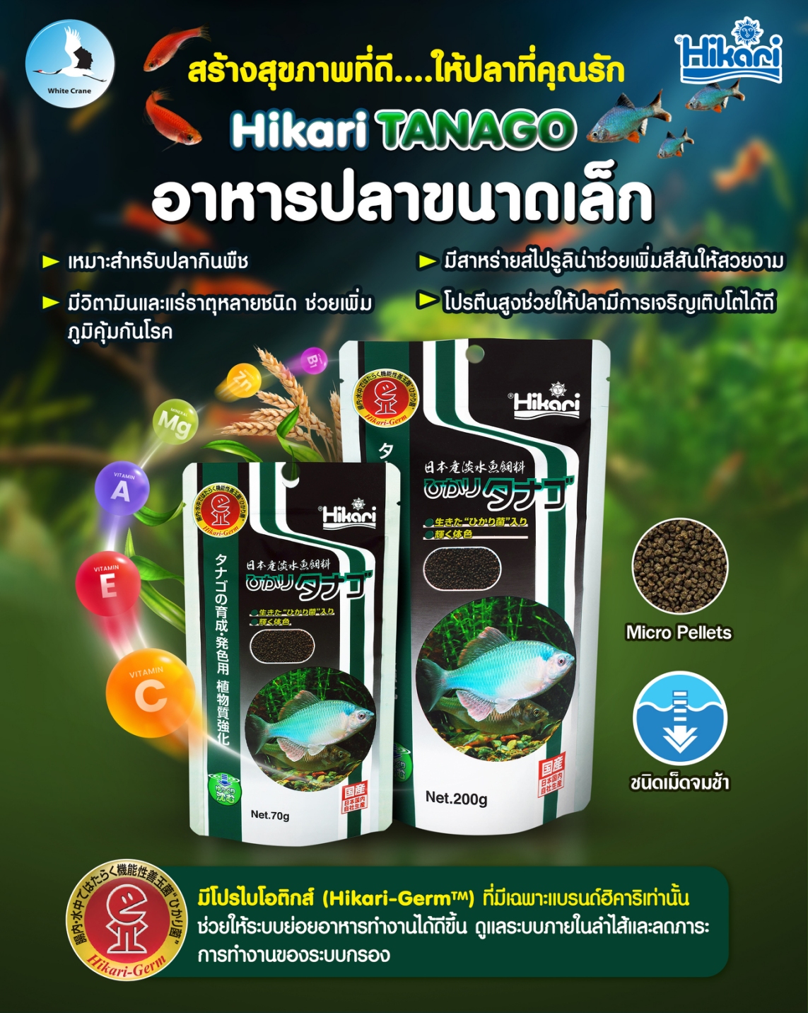 อาหารสำหรับปลาเขคร้อนขนาดเล็ก ให้คุณค่าทางอาหารครบถ้วน ชนิดเม็ดกึ่งลอยน้ำช่วยให้ปลากินอาหารได้อย่างทั่วถึง